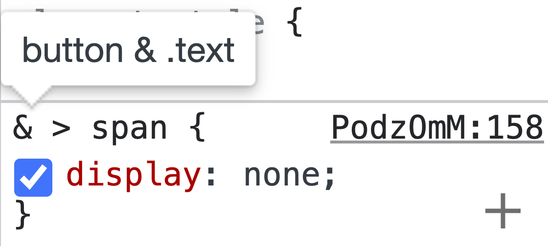 In the example above you can see that Chrome Devtools (Chrome 114) are trying to add helpful context about the selector, but there’s multiple levels of nesting, so we don’t get to see the full resolved selector here, which is inconvenient.
